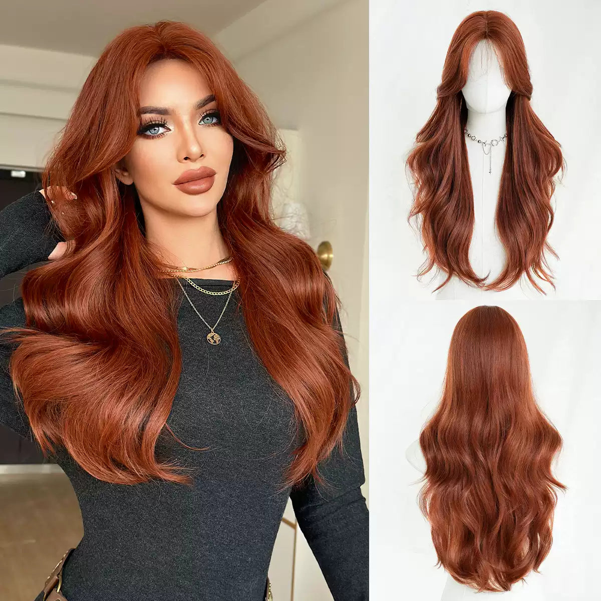 Peruka syntetyczna o długości 72 cm (28,34 cala) w ciepłym odcieniu klasycznej miedzi. Lekko falowana struktura dodaje naturalnego ruchu, a przedziałek pośrodku pięknie podkreśla symetrię twarzy. Brak grzywki sprawia, że fryzura wygląda lekko i ponadczasowo, doskonała do codziennych i eleganckich stylizacji.